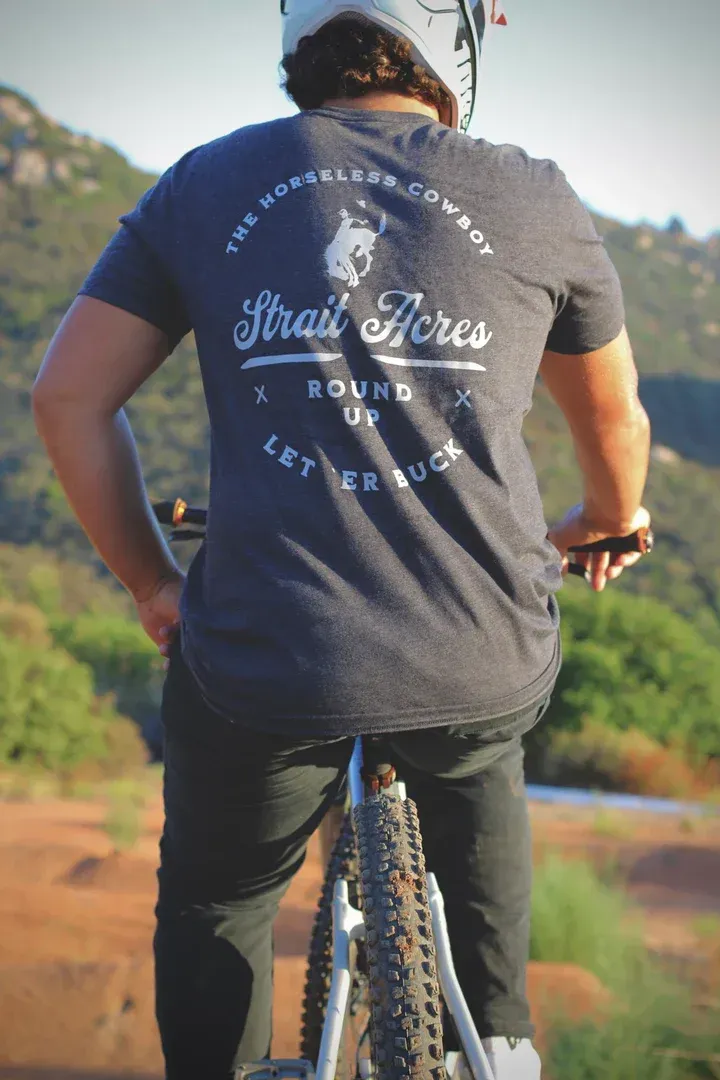In honor of the Horseless Cowboy himself. Let 'er Buck Tee's are 50% Cotton and 50% Polyester, with a slim fit cut. Front of the Tee features a small SA logo.
